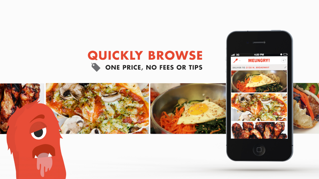 Similar to seamless or grubhub, MeUngry offers users a simpler way of ordering food online and mobile. I wanted to show how simple the app is to use while keeping the mood light hearted and fun. With the monster already designed into the app I decided to make him come alive in the animation.